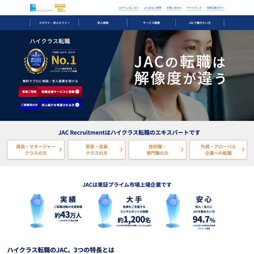 - 管理職・専門職のハイクラス転職に特化◎多くの実績があるから信頼できる