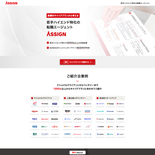 - ナショナルクライアントからベンチャーまで1,200社以上からキャリアプランに合わせて紹介