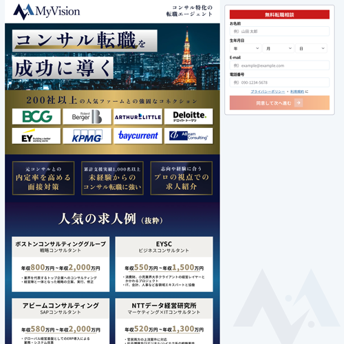 ・レジュメ添削・面接アドバイスはあるが、ケース面接対策やマンツーマンサポートは基本的に行っていない ・コンサル経験者による徹底指導といった特化型対策は少ない |